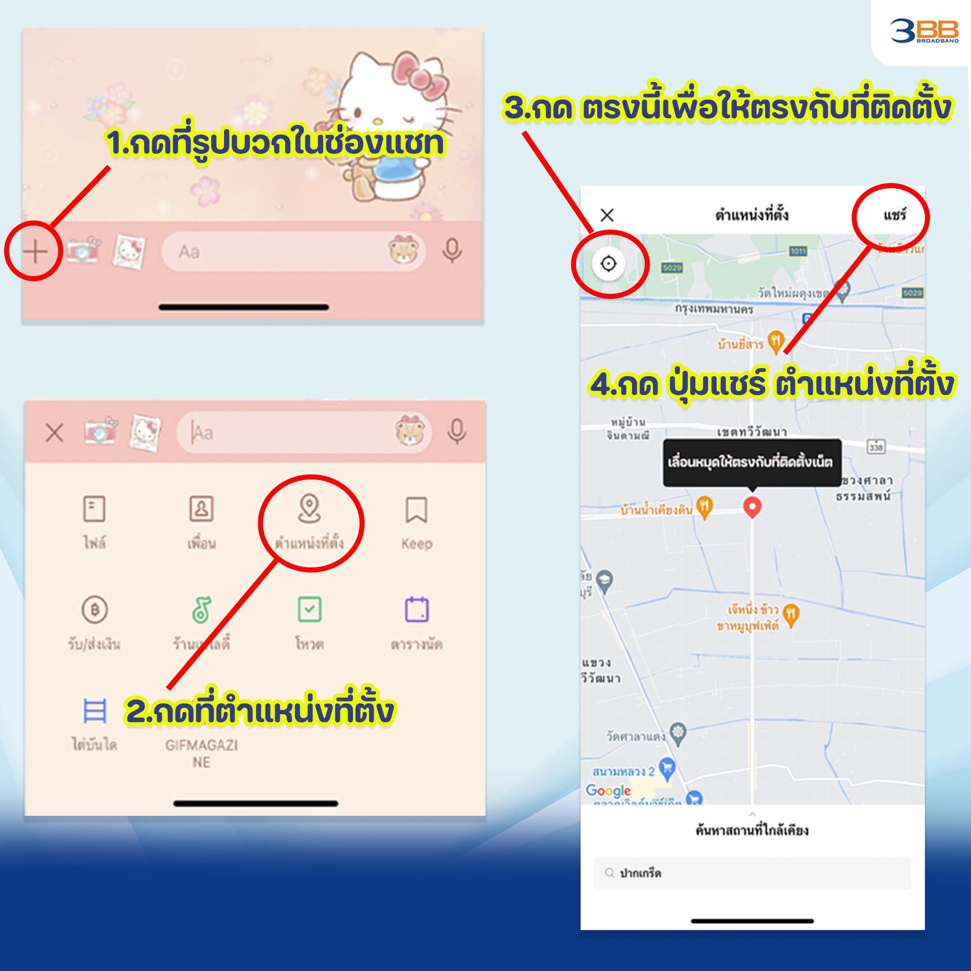 2.เพิ่มเพื่อนที่ "ไลน์แอด" แล้วแชร์ตำแหน่งที่ต้องการติดตั้งเข้ามาตรวจสอบพื้นที่ให้บริการ