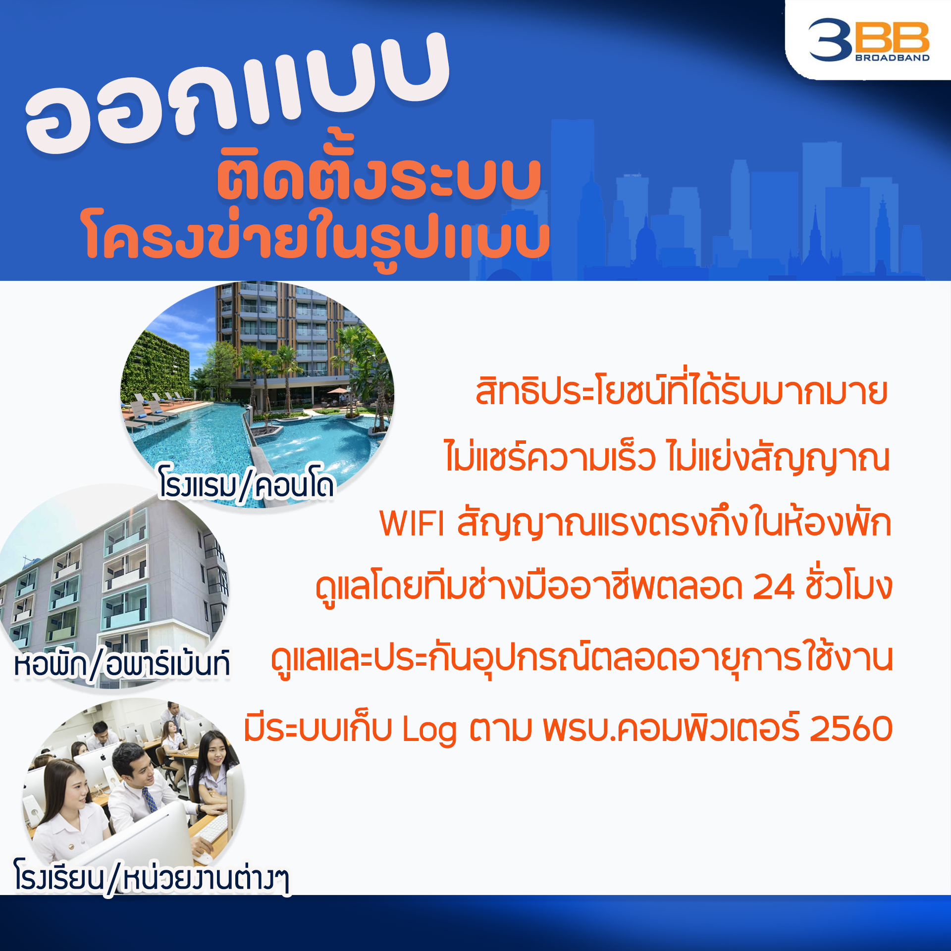 3BB รับออกเเบบ พร้อมติดตั้ง Internet WiFi ภายใน